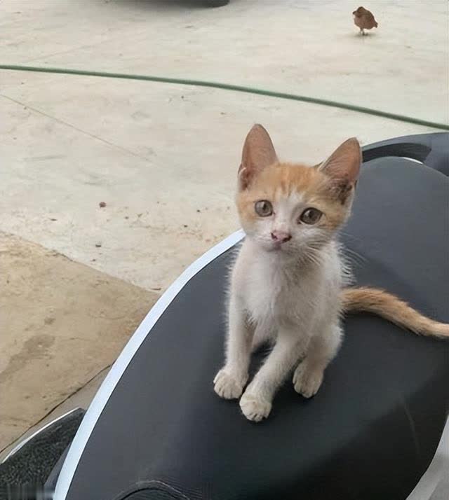 当时咪咪自己跑到了网友的机车上,又瘦又小,还脏兮兮,脚上似乎还有伤,喵喵叫着讨食,似乎饿了很久,非常无助。