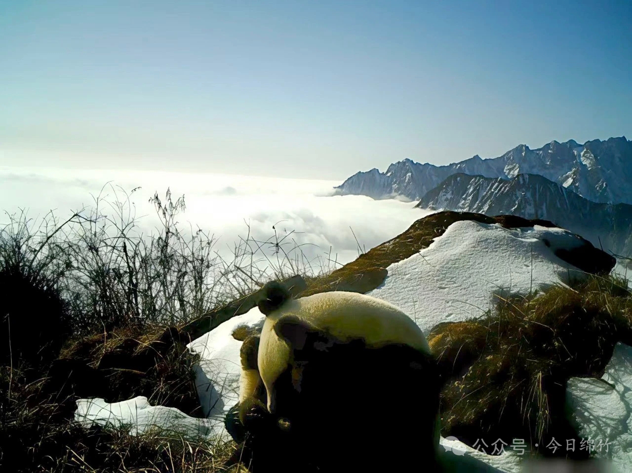 镜头前策略股,一只雌性大熊猫怀抱幼崽,在红外相机前安然小憩。片刻休整后,它小心翼翼地将幼崽衔在口中,缓步前行,最终消失在九顶山翻涌的云海之间,温馨又充满野趣。这是继2021年绵竹发现雌性大熊猫带崽影像以来,第二次拍摄到的高清视频影像。