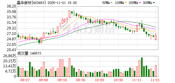 晶华新材11月21日大宗交易平台共发生2笔成交,合计成交量222.20万股,成交金额5583.89万元。成交价格均为25.13元,相对今日收盘价折价4.81%。从参与大宗交易营业部来看,机构专用席位共出现在1笔成交的买方或卖方营业部中,合计成交金额为2136.05万元,净买入2136.05万元。